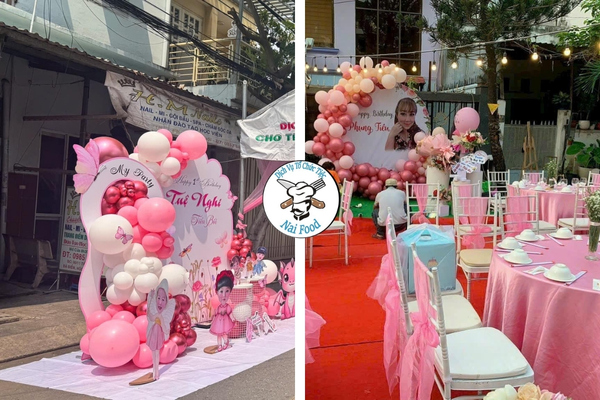 Naifood sẽ trang trí không gian tổ chức tiệc sinh nhật tại nhà theo đúng chủ đề hoặc ý tưởng của khách hàng. Các dụng cụ trang trí, bong bóng, backdrop, bàn bày biện, v.v. sẽ được chuẩn bị và decor để tạo không gian đẹp mắt và ấn tượng.